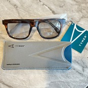 フレームはトートイス(べっ甲)、レンズは紫外線量により明るさが変わる調光レンズ。