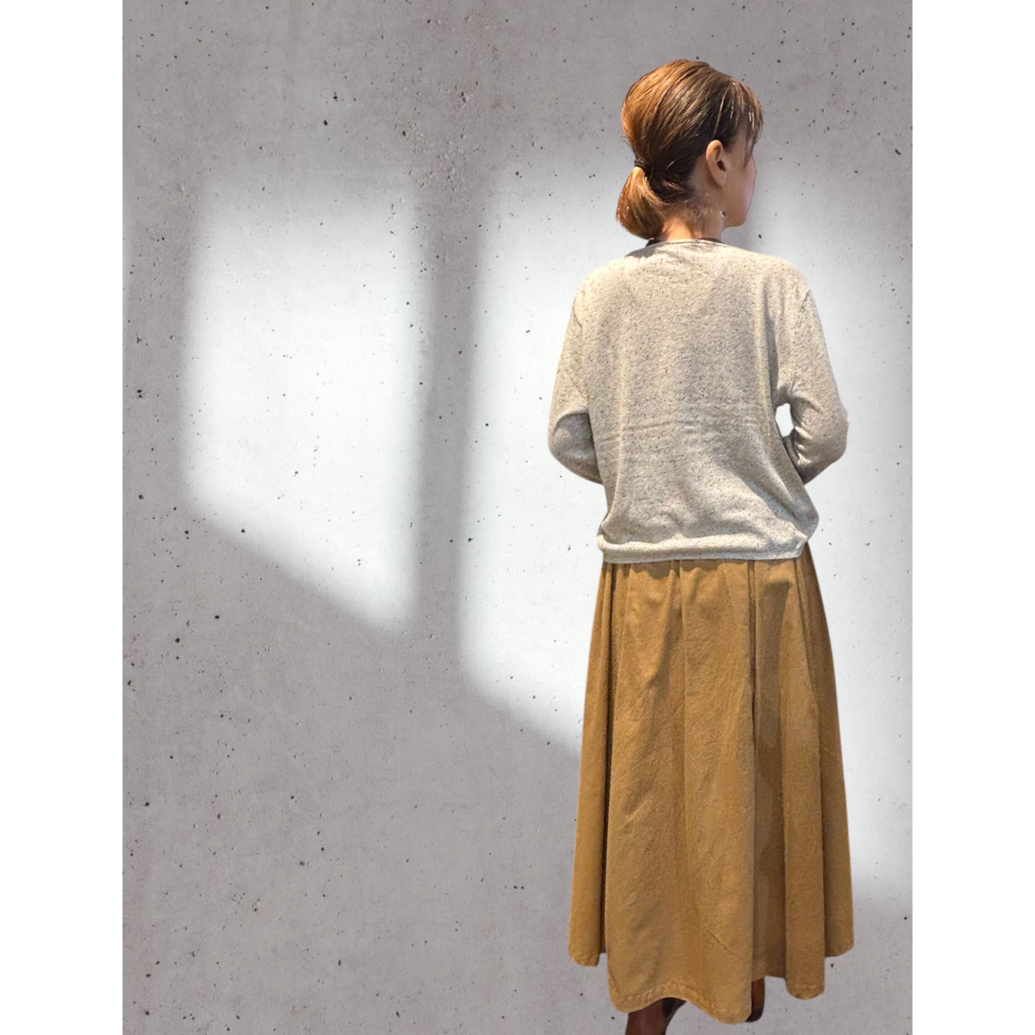 ・柔らかなニット生地を使用しているため、快適な着心地を実現。軽やかな風合いで、秋口から冬にかけてのコーディネートに最適です。