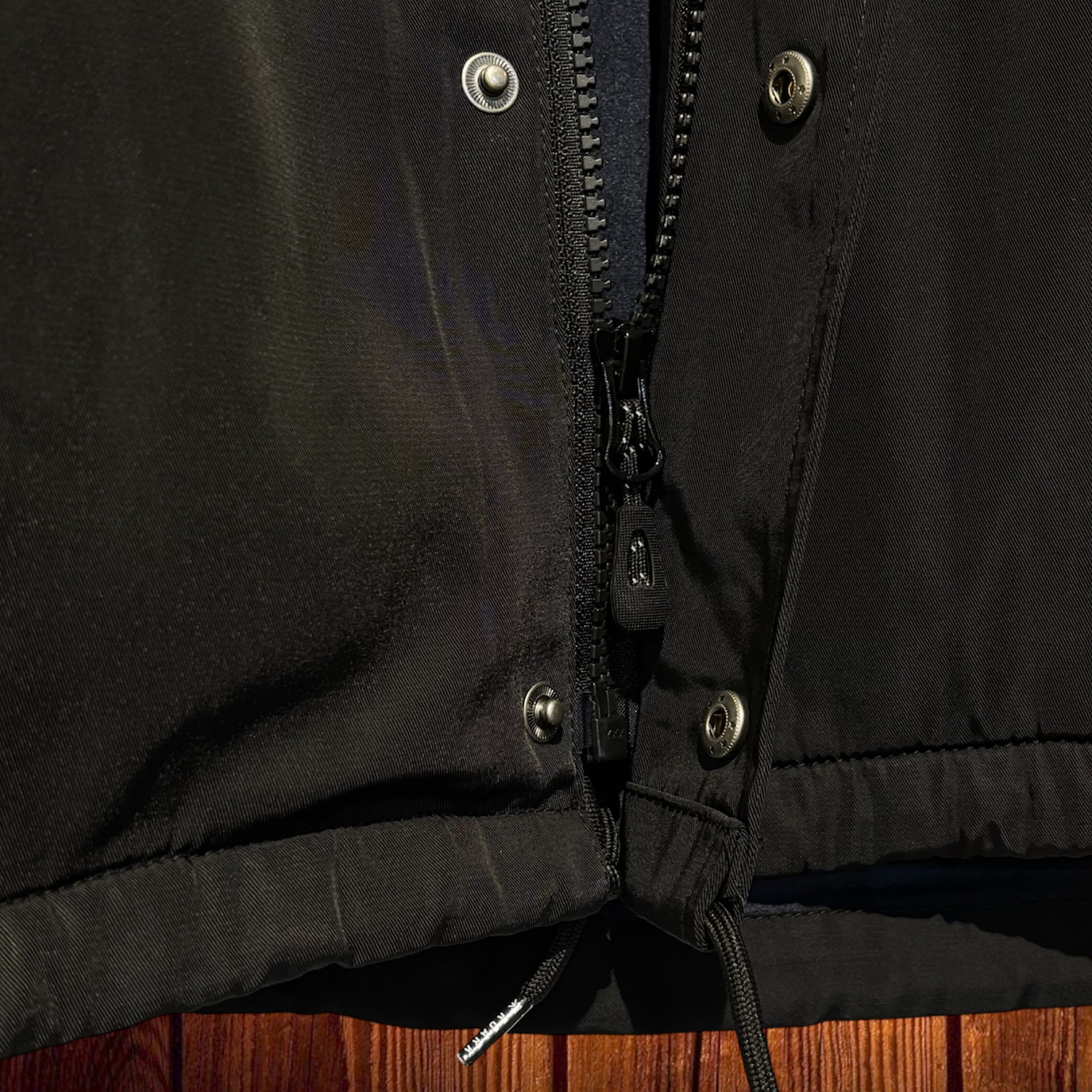 表地には適度なハリ感と艶感を持つポリエステル生地を採用し、裏地にはマイクロフリースが使われた防寒性が高いコーチジャケット。