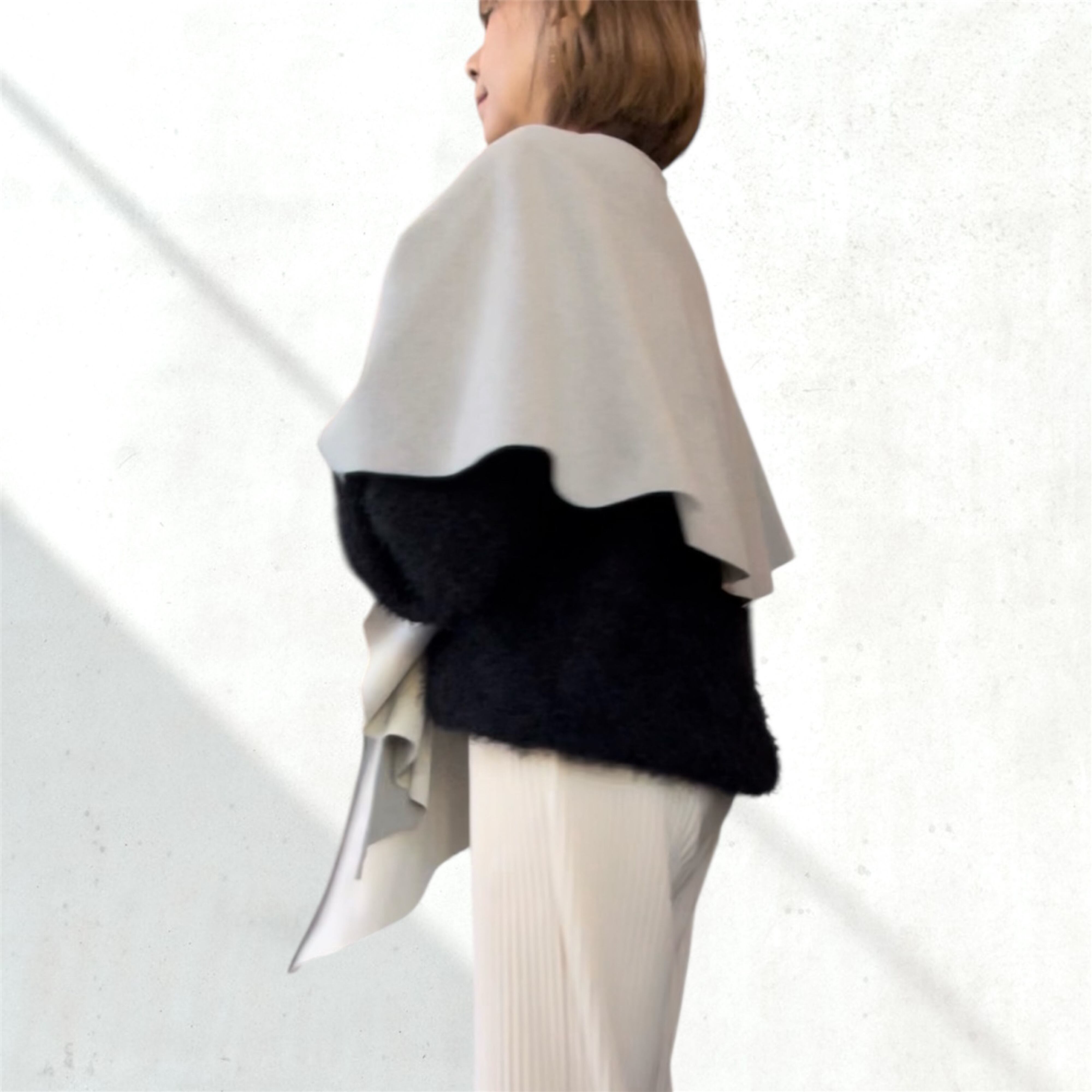 コートとしてもケープとしても、様々な場面で使いこなせるアイテムです。