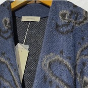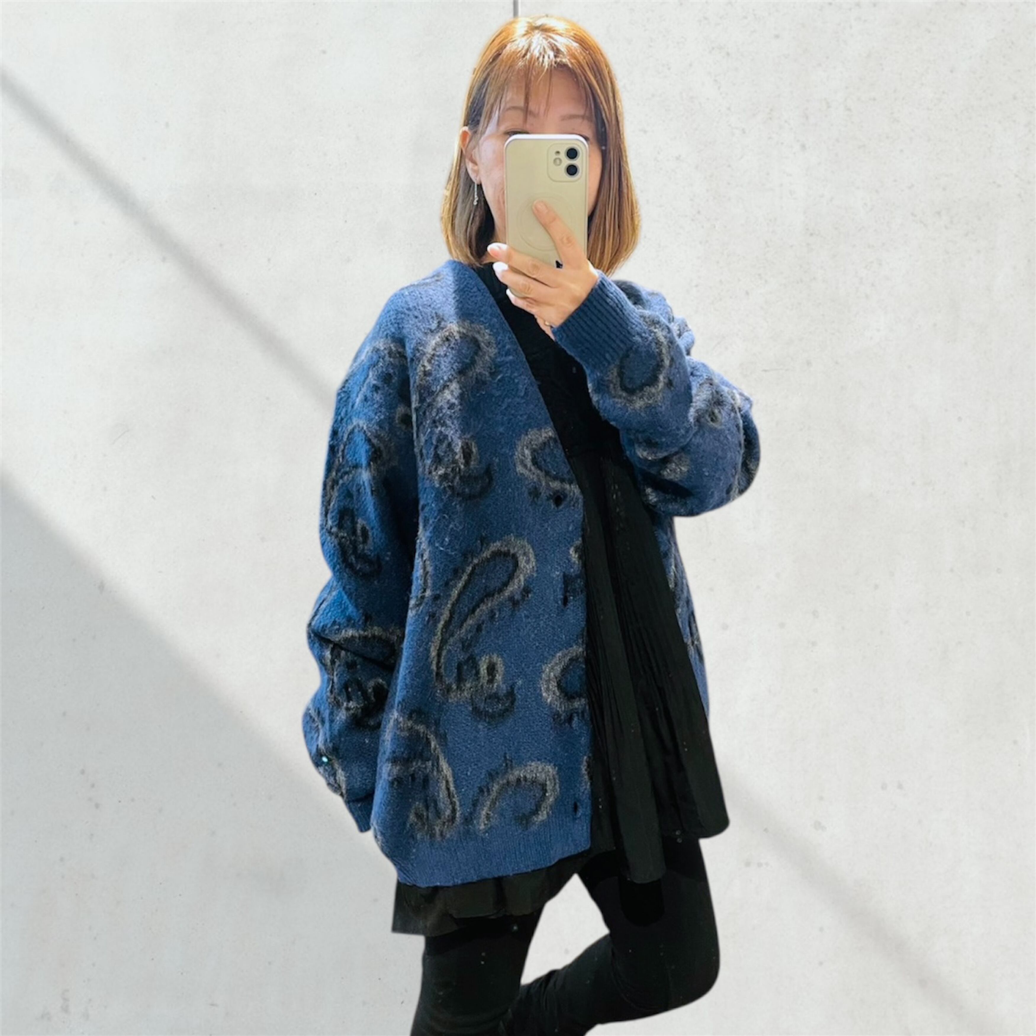 メランジュ調の糸をベースに編み上げたカーディガン。