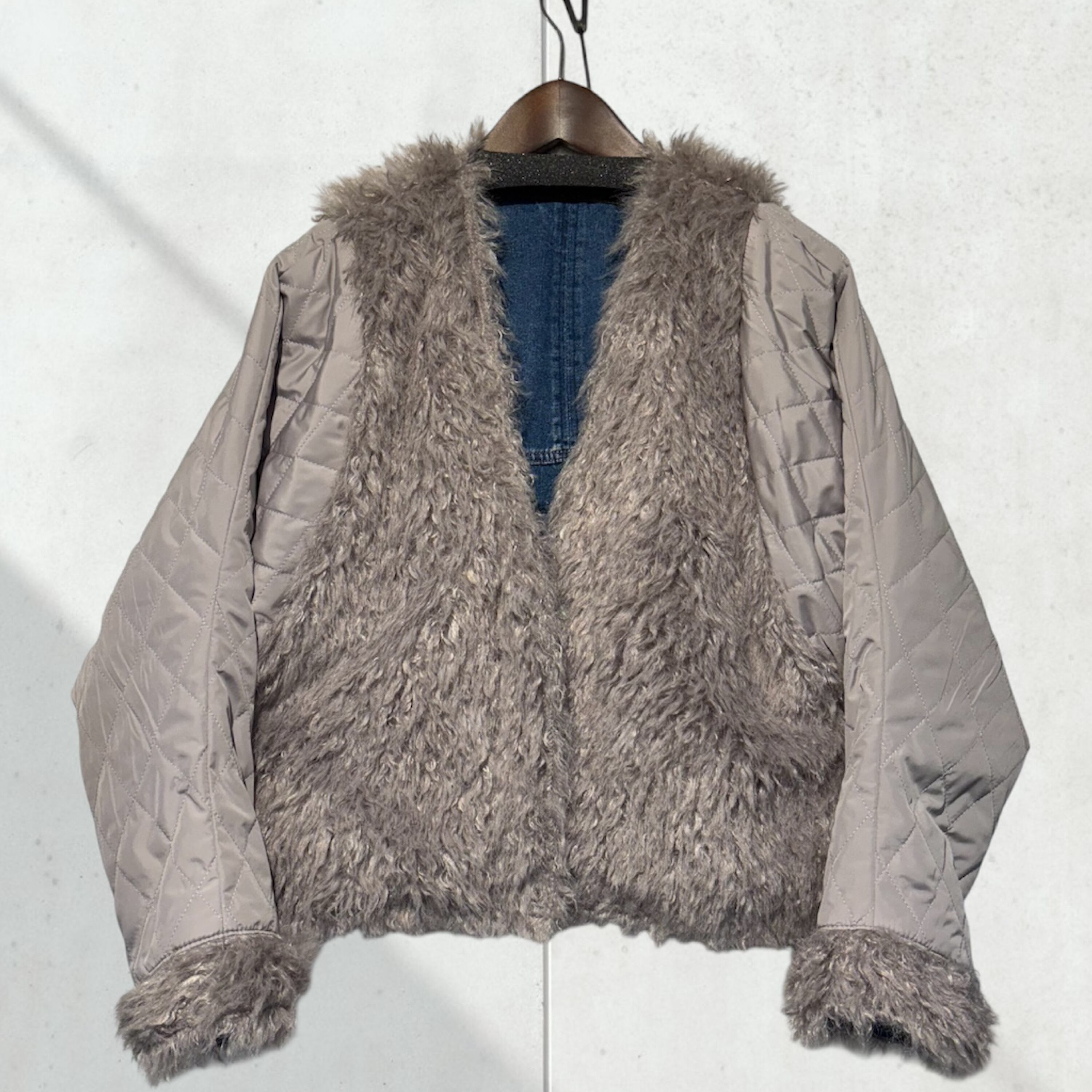 ファーサイドの袖部分はダイヤキルティングになっており、異素材切り替えがアクセントに。