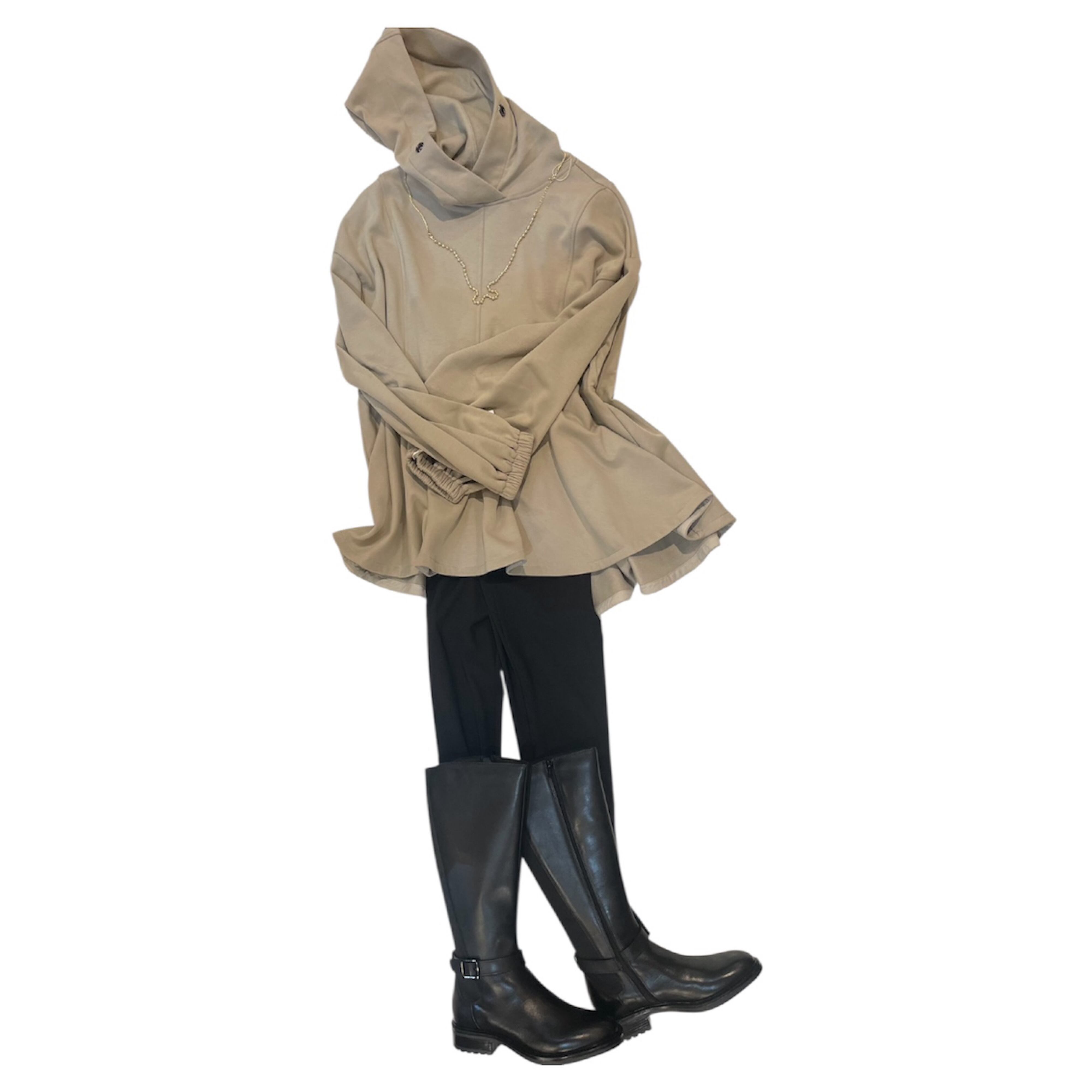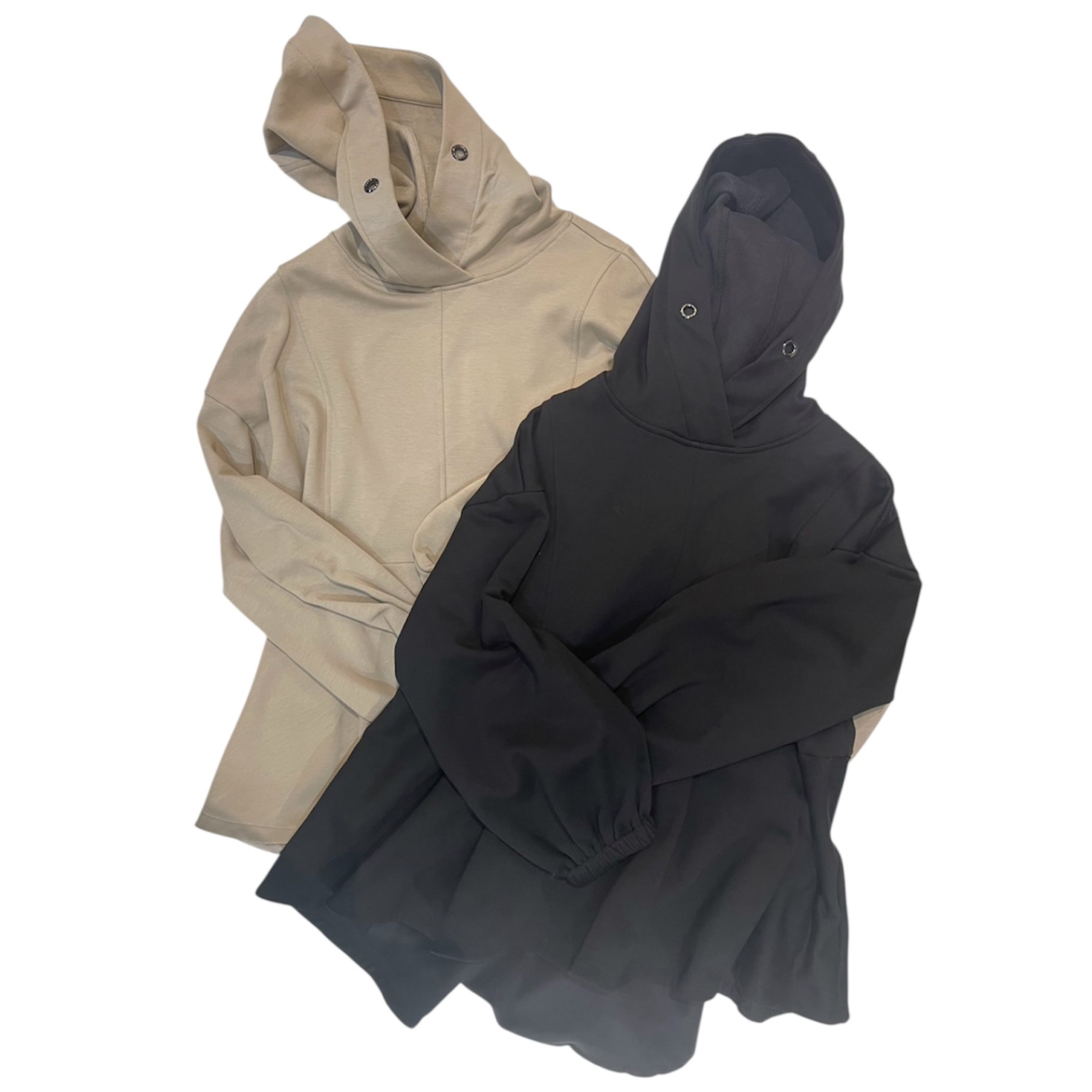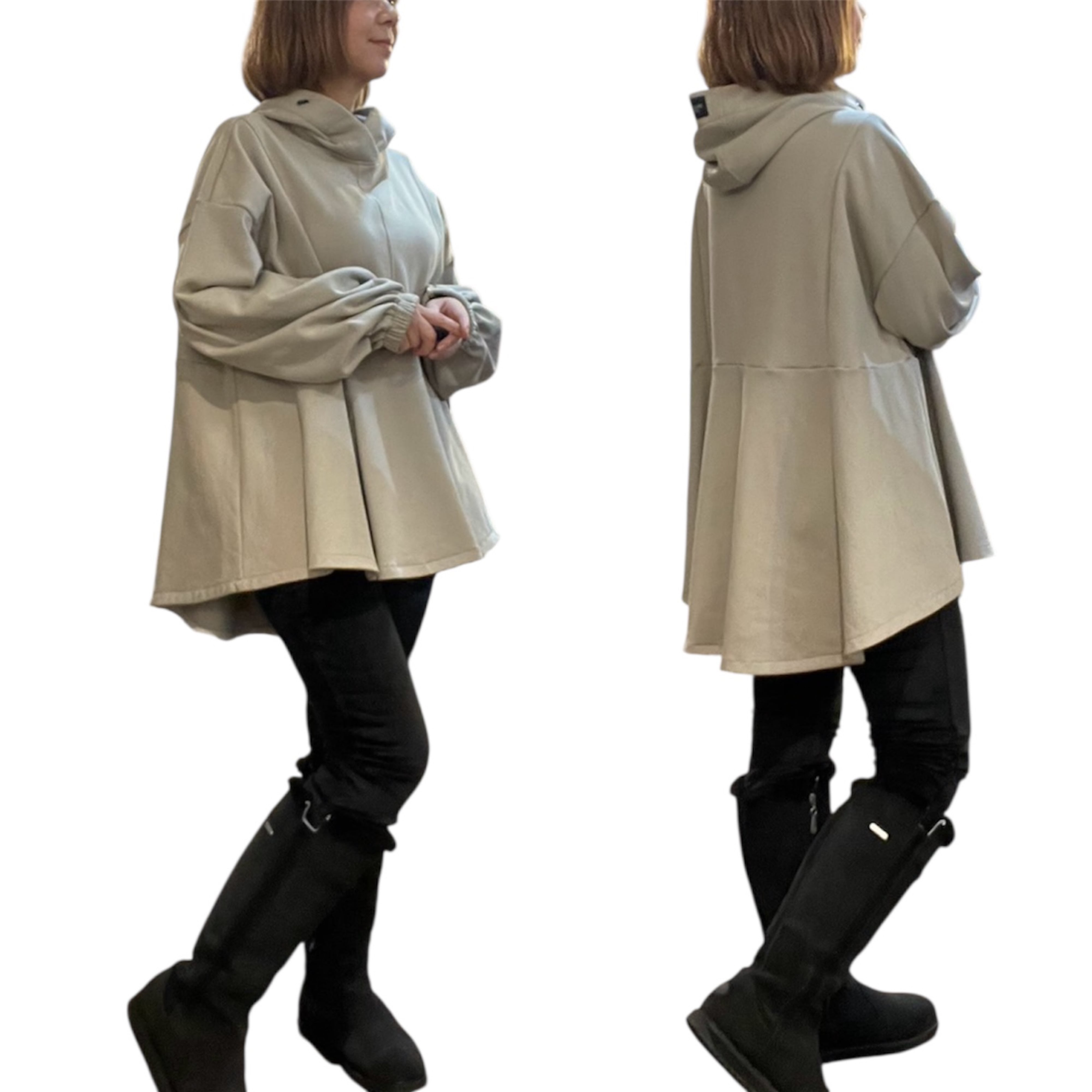 ayane(アヤン)のデザインパーカー(WOMENS)は、裾に向かってフレアを持たせたふんわりデザインが魅力的な一着です。長めの丈感が女性らしさを引き立て、軽やかな着心地を実現しています。