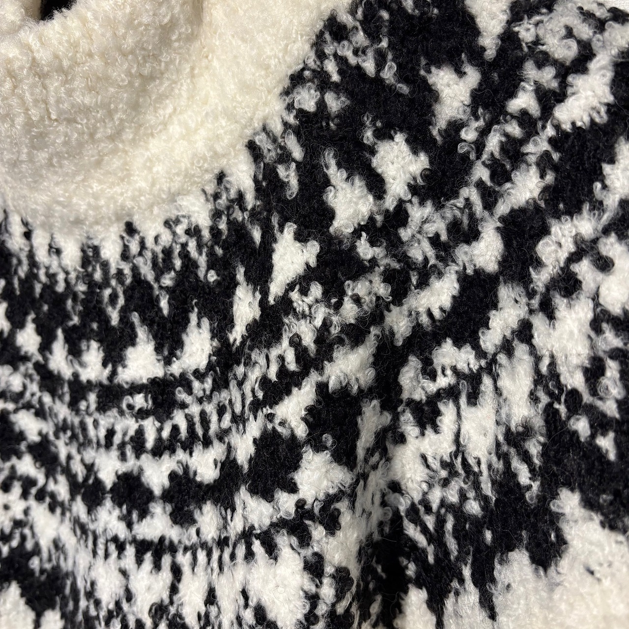 このジャガードニットは、冬の定番アイテムとして、幅広いシーンで活躍すること間違いなしです。