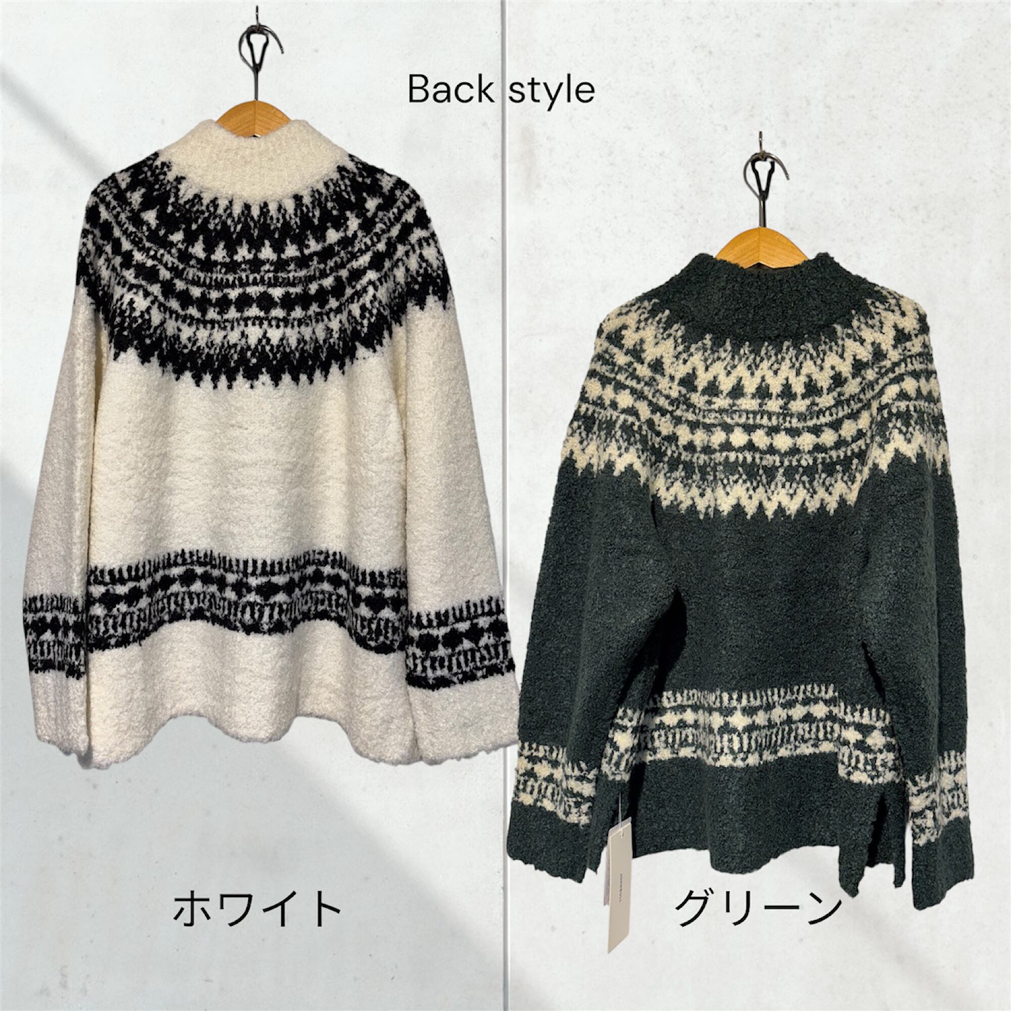 ・ノルディック柄が目を引く、シーズンムード満点のニット。