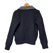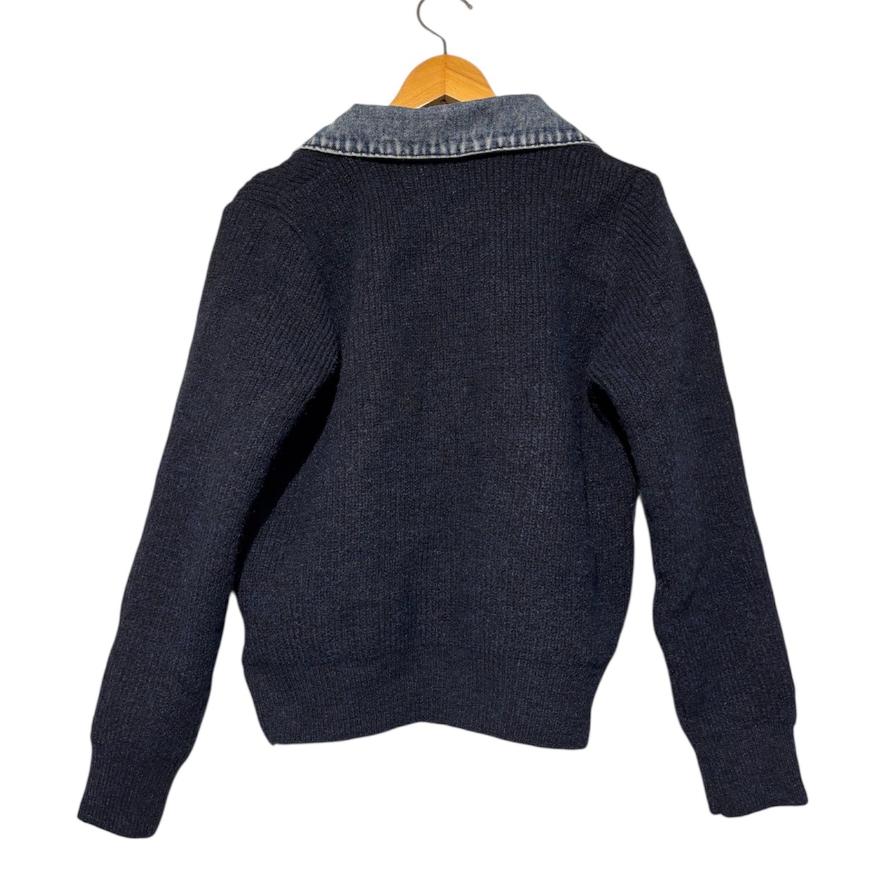 このカーディガンは、デニムのしっかりとした質感と、ニットの柔らかな着心地を兼ね備えています。