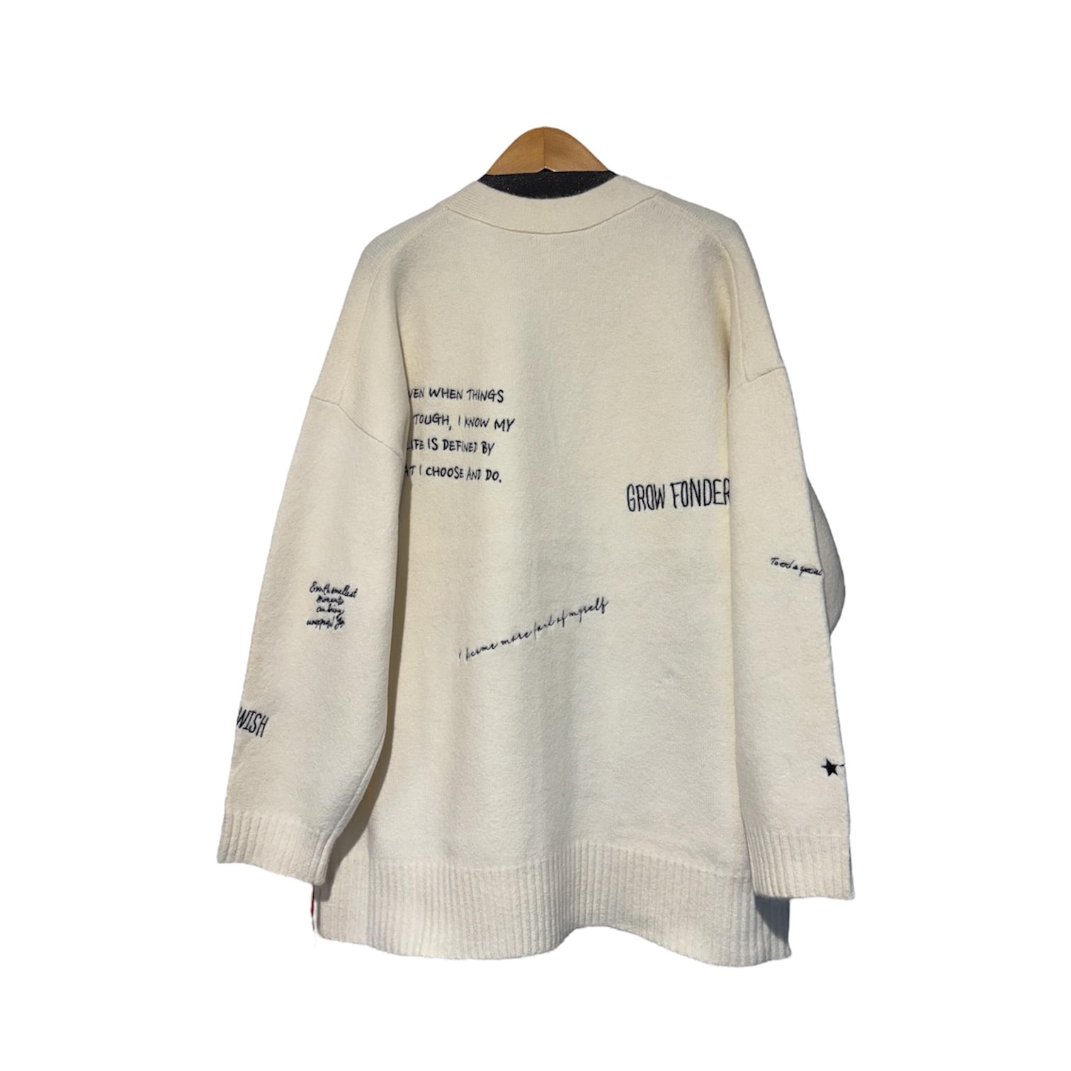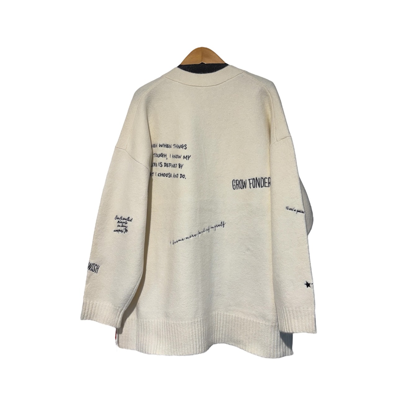 Dignite collier(ディニテ コリエ)の刺繍ニットカーデ(WOMENS)は、ポップな刺繍が施されたデザインが魅力的な一着です。