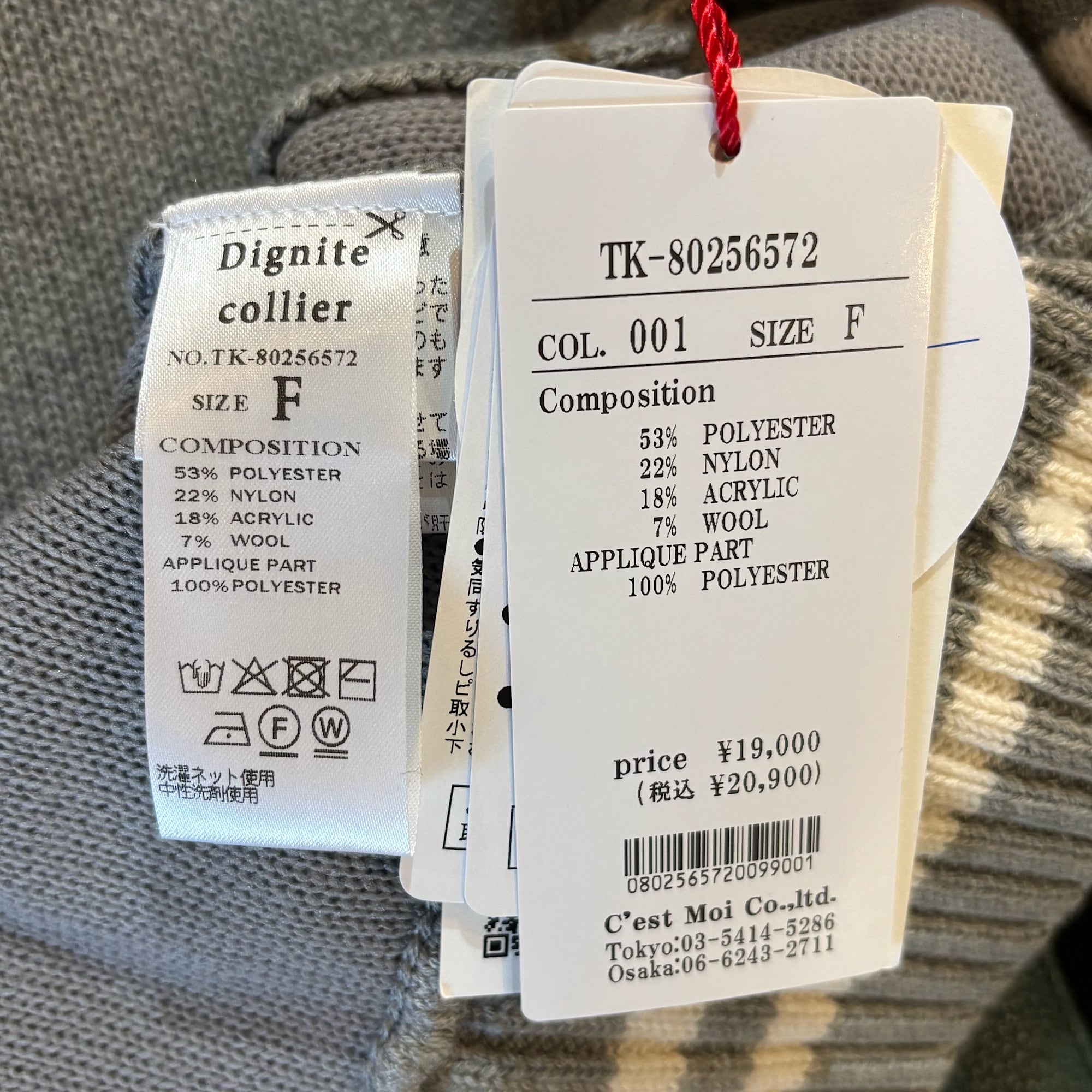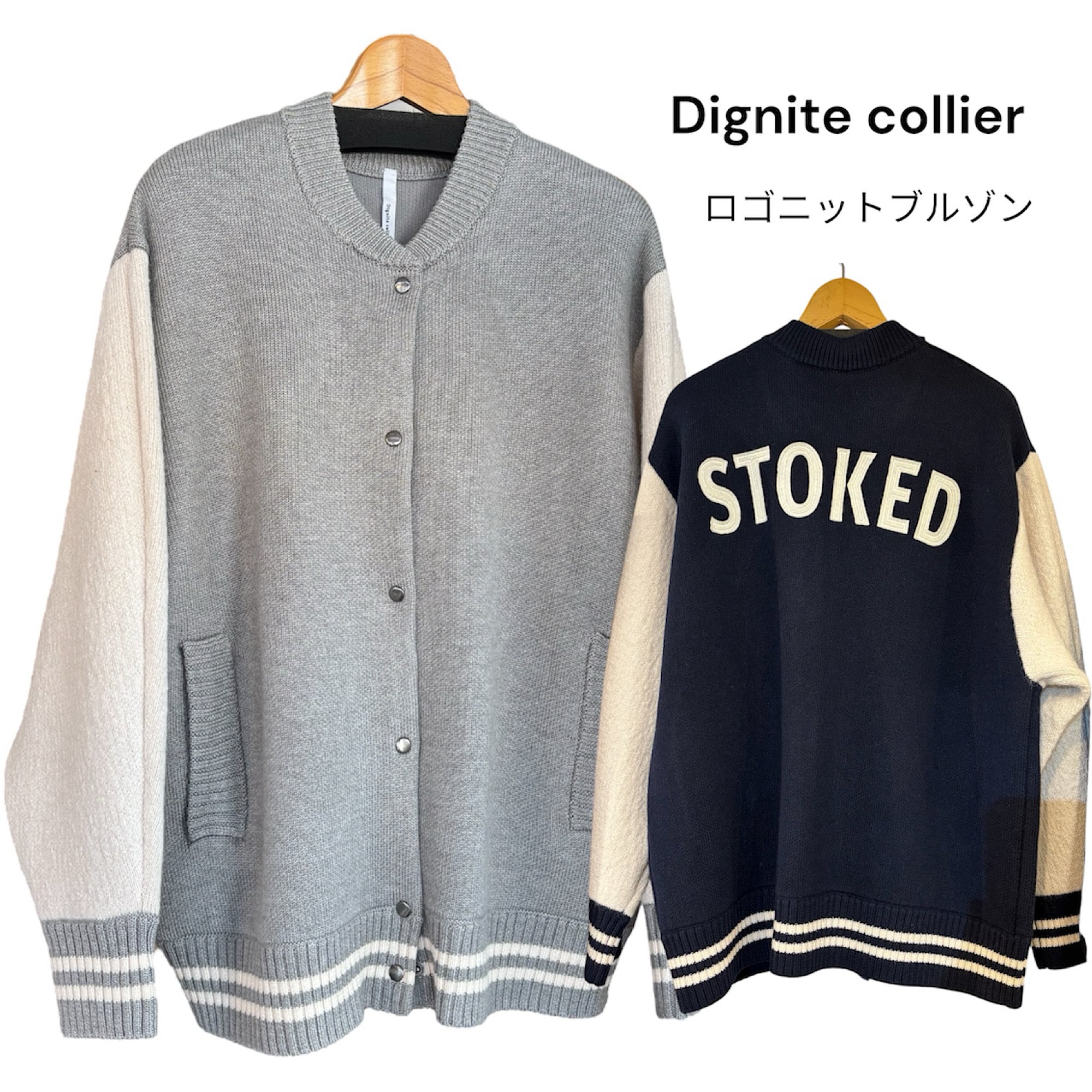 Dignite collier(ディニテ コリエ)のロゴニットブルゾン(WOMENS)は、スタジャン風のデザインが魅力的な一着です。