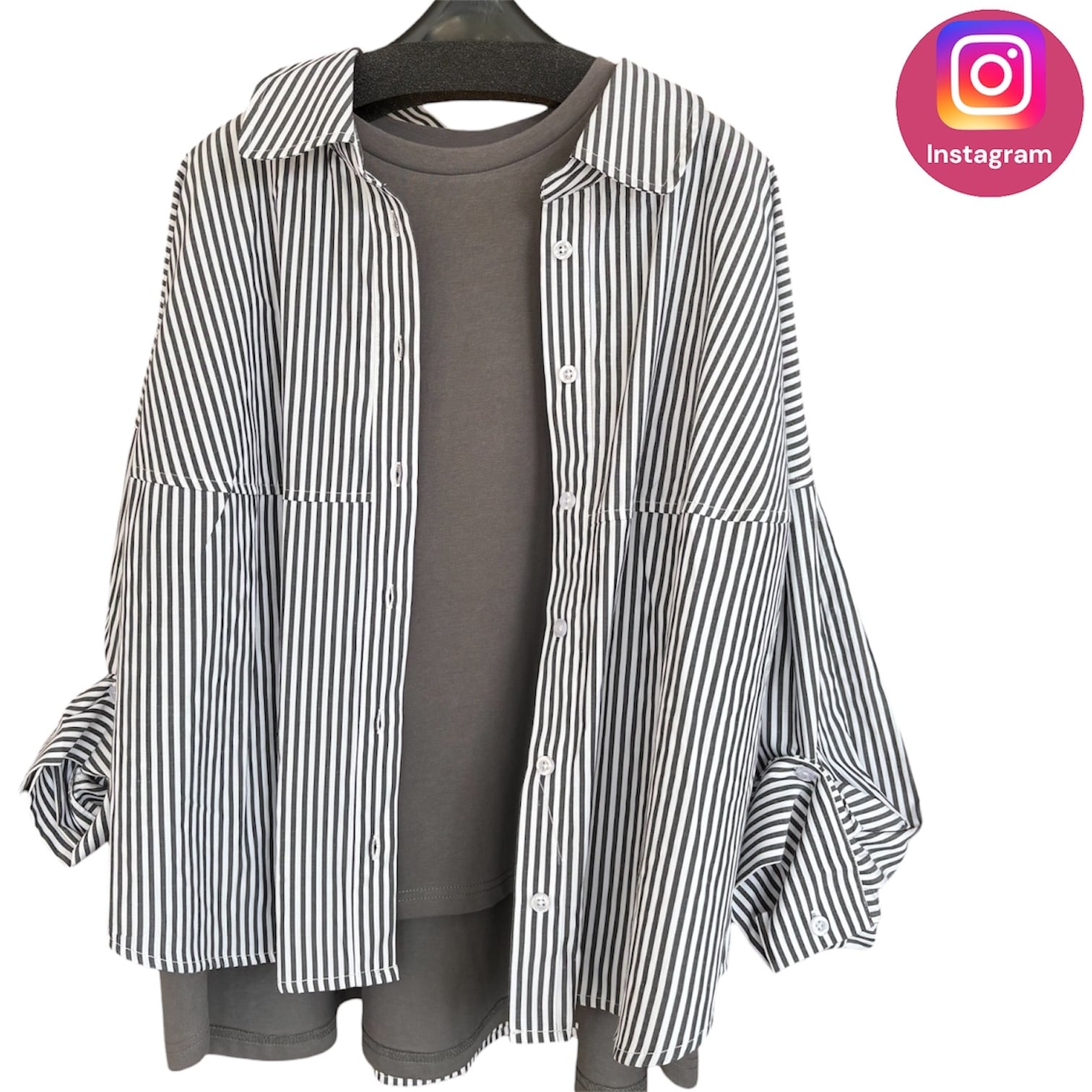 ayane(アヤン)ストライプボタンタックスリーブシャツ(WOMENS)