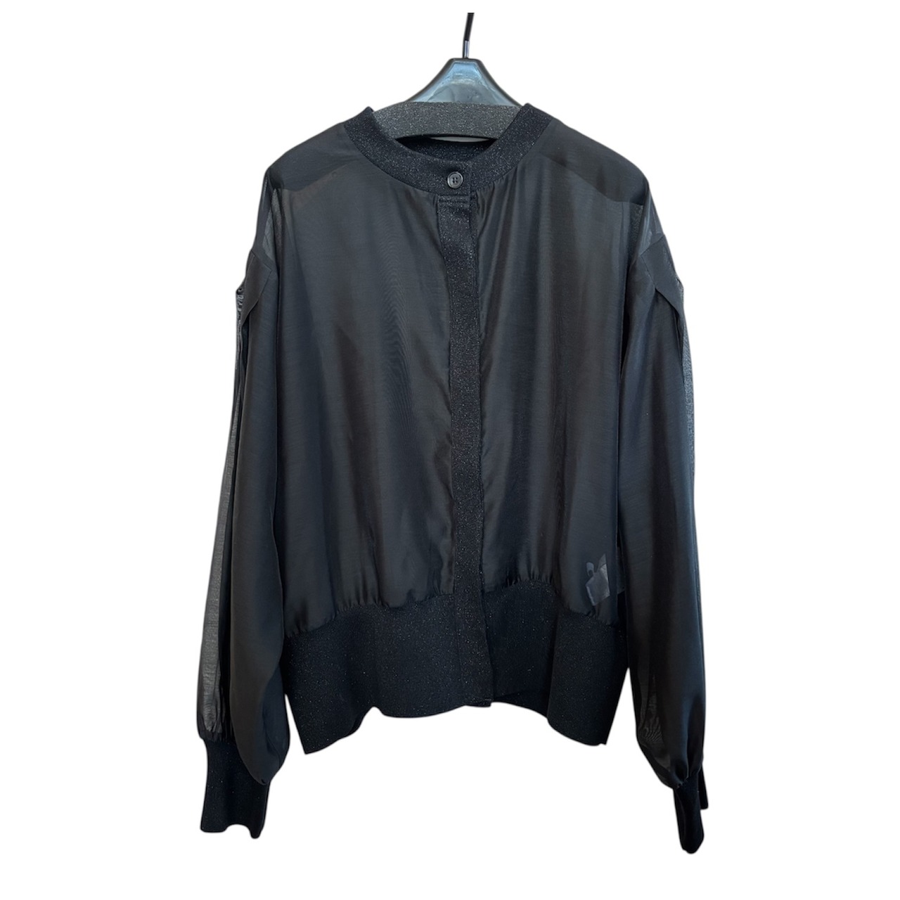 Dignite collier(ディニテ コリエ) のシアー切替カーディガン(WOMENS)は、上品なシアー感とリブ部分のさりげないラメが特徴的なアイテムです。