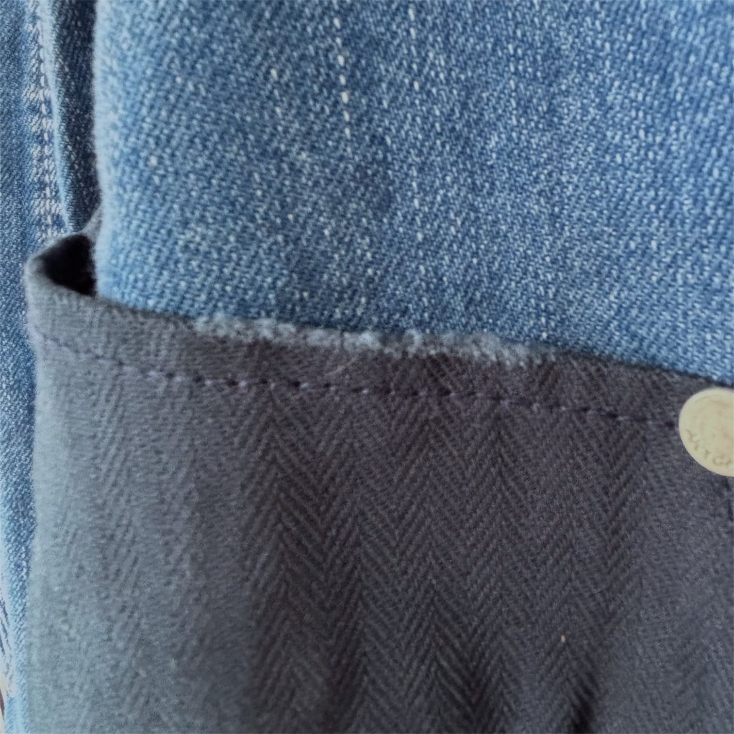 ストレッチなしの綿100%のデニム生地は、しっかりとした風合いを持ち、使い込むほどに味わいが増していきます。