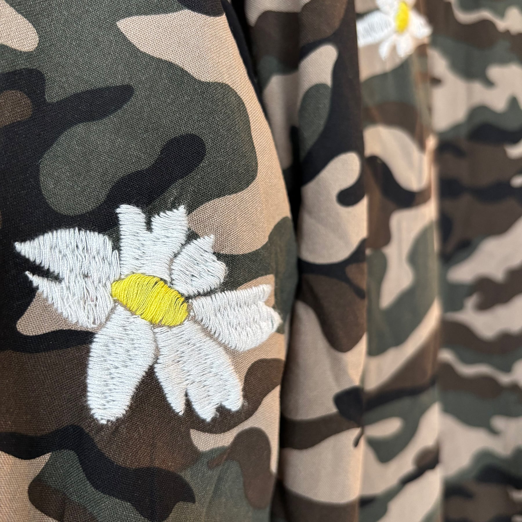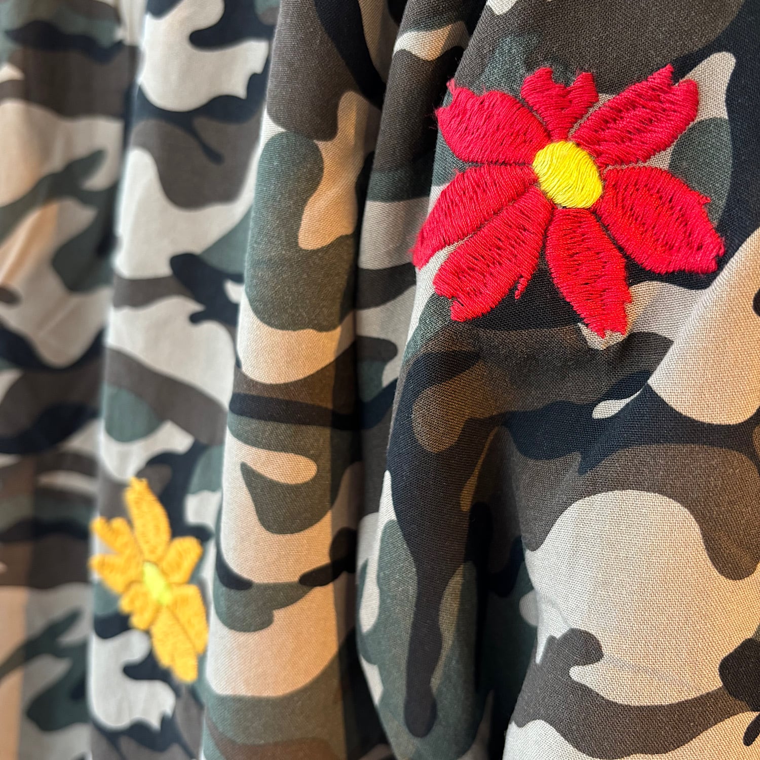 ぜひ、このこだわりのフラワーエンブロイダリーカモトッパーシャツを体験してみてください!